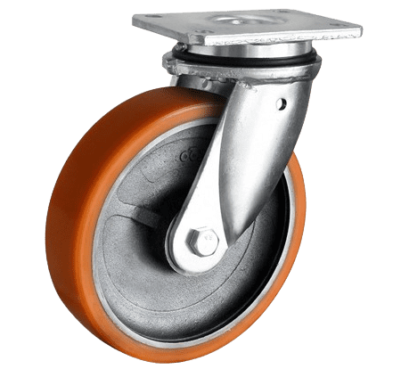 RUEDA: de poliuretano de alta calidad, dureza 92 Shore A, disponible en color ANARANJADO. CASCOO®