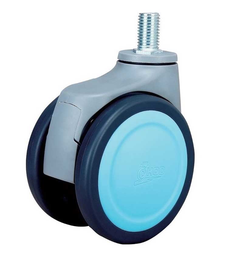 Dureza de la banda de rodaje: 65 Shore ARango de Temperatura de trabajo: -1 OºC a 60ºC Color: RAL 9002, movimiento suave y silencioso. Espiga M16. HOD®.